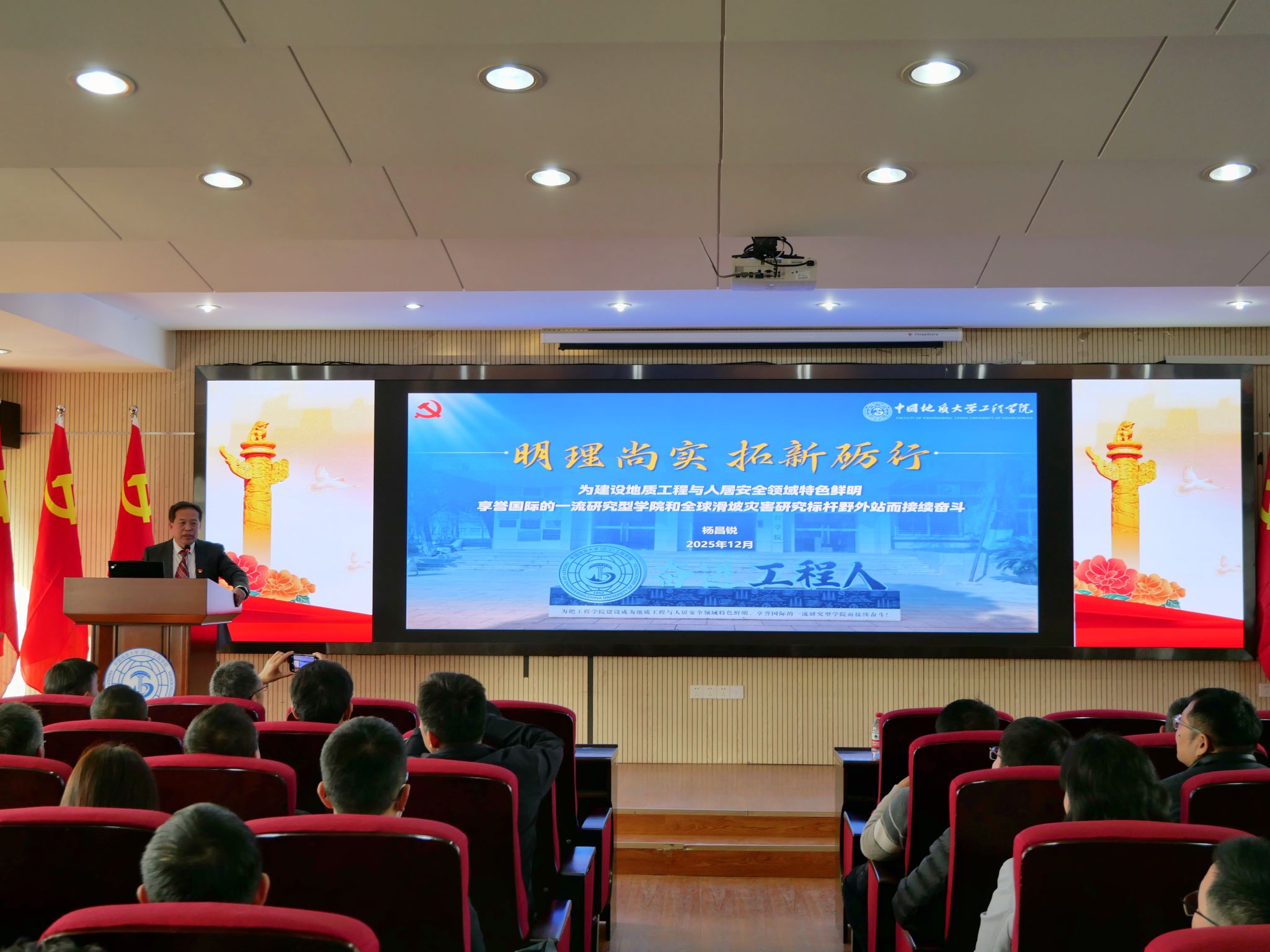 2025年12月11日,学院召开中共买球赛十大平台(武汉)十大买球官方网站委员会第五次党员大会,党委书记杨昌锐同志代表第四届党委会作题为《明理尚实 拓新砺行 为建设地质工程与人居安全领域特色鲜明、享誉国际的一流研究型学院和全球滑坡灾害研究标杆野外站而接续奋斗》工作报告