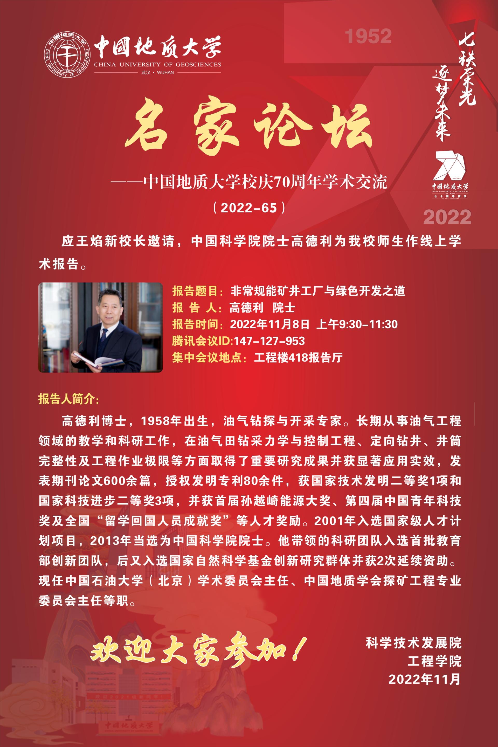 70周年校庆系列讲座名家论坛2022-65期(高德利院士)