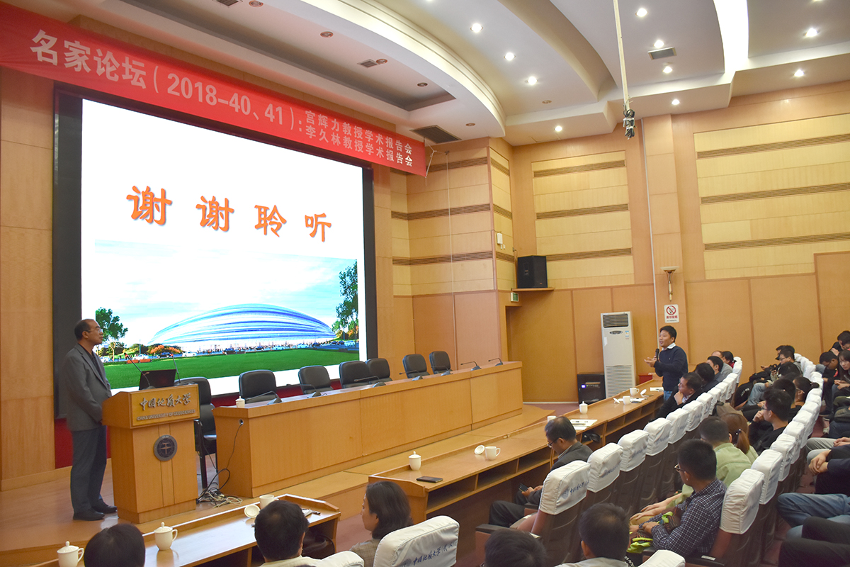 李久林以《智慧建造——从北京夏奥到冬奥的发展与实践》为题,从建筑产业环境发展的新常态、建筑工程智慧建造的新理论和大型工程智慧建造的新实践3个方面展开报告。他结合多年的工程实践和科研心得,回顾了“鸟巢“、昆明新机场、北京英特宜家工程、槐房再生水厂和北京新机场等重大项目建造中的BIM及信息化技术应用,系统阐述了智慧建造的发展历程和实践经验,展望了智慧建造的发展方向,并与师生就创新型人才培养模式等问题展开讨论。