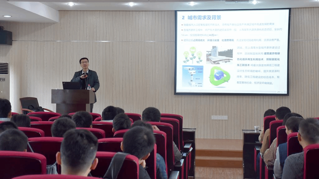 报告围绕“城市更新中绿色施工技术探索与实践”展开,介绍了上海建工集团工程研究总院在复杂的城市环境中绿色施工技术的探索和工程实践经验,分别从“高架桥梁预制拼装技术”、“地下结构预制拼装技术”和“渣土再生利用技术”三个方面介绍了绿色施工技术中的关键技术问题和积累的工程经验。报告结束后,吴小建所长热情回答了参会师生的提问,他衷心希望十大买球官网师生在城市绿色施工技术上取得更大的突破,为解决我国城市施工中的环境难题做出贡献。