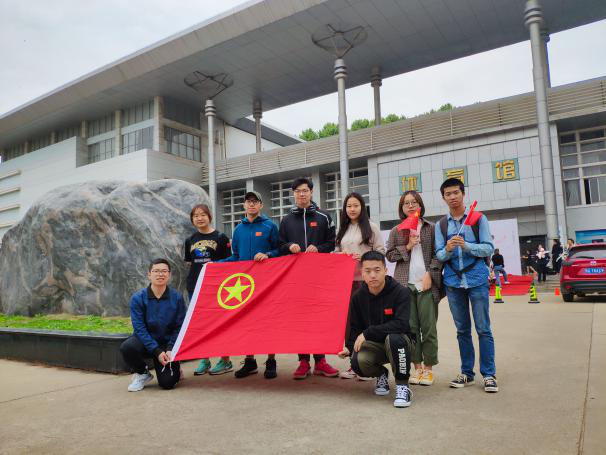 团支部与团旗合影