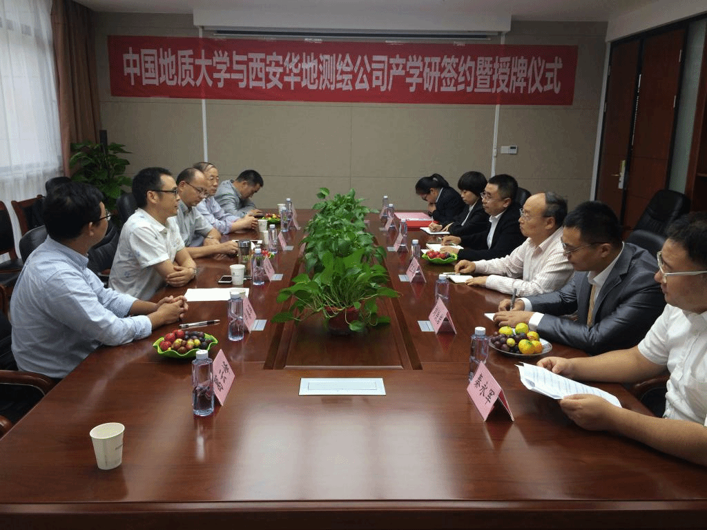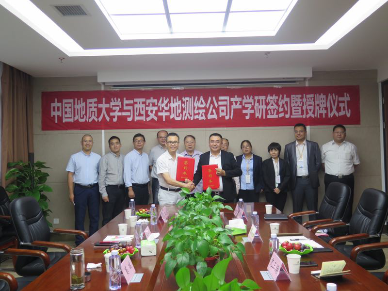 2019年9月15日-9月17日,买球赛十大平台(武汉)十大买球官方网站党委副书记江广长、副院长窦斌、勘察与基础工程系主任卢春华、姚爱国教授、院工会主席蔡记华教授及工程地质与岩土工程系葛云峰副教授一行赴西安,先后走访了陕西西探地质装备有限公司和西安华地测绘科技有限公司,并与陕西西探地质装备有限公司召开了产学研合作基地揭牌仪式,与西安华地测绘科技有限公司签订了产学研合作协议并进行揭牌。