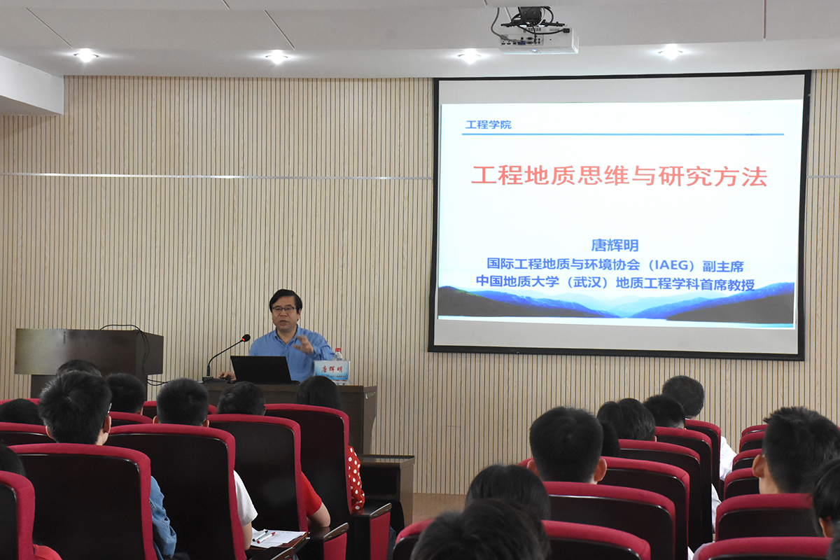 唐辉明教授介绍了工程地质学学科的特点,强调工程地质学研究对象具有演化属性。重点介绍了十大买球官网“3+5”工程地质人才培养模式和现代工程能力导向的教学内容体系,以及十大买球官网在地质工程领域的特色与优势。并与同学们探讨了工程地质思维方法、研究方法、原型试验与监测和空间大数据应用等。最后以滑坡研究为例,讲解了这些内容和方法在滑坡中的实践与成效。