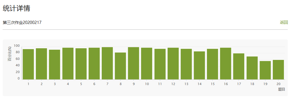 《工程项目管理》课程的学生课后作业完成正确率的统计反馈