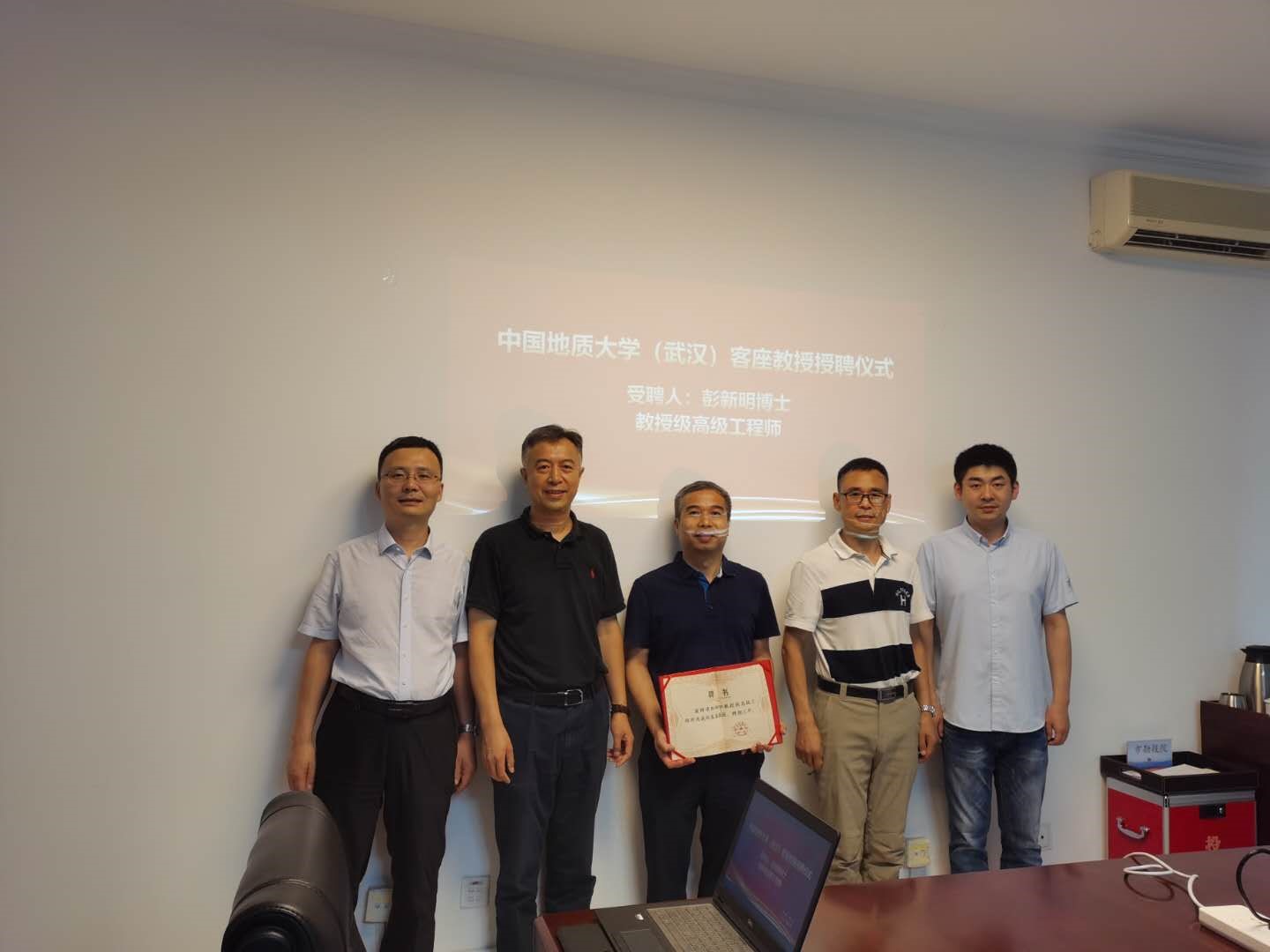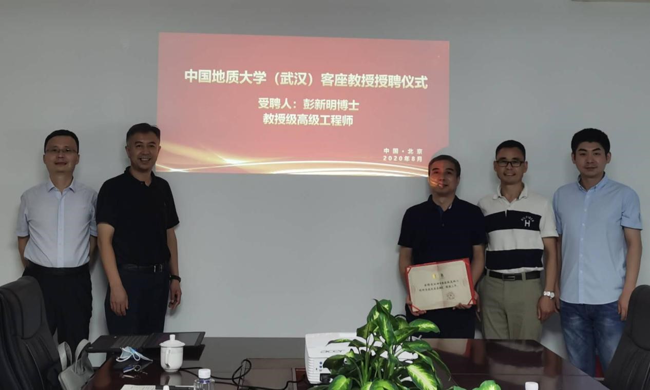 8月12日下午,买球赛十大平台(武汉)聘请彭新明博士为客座教授的仪式在北京市地质勘察技术院217会议室举行。北京市地质勘察技术院行政负责人王立发、院副总工程师兼资源勘查中心主任彭新明及相关人员出席仪式。仪式由十大买球官方网站副院长窦斌教授主持。