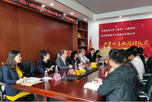 李红丽书记感谢汪旭涛和胡凯锋两位优秀校友心系母校,关注十大买球官方网站发展,积极为学院大学生、研究生提供实际工程实习机会。她表示,产学研基地建设可加强产学研用深度融合,推动校企资源共享与优势互补,促进企业技术服务升级和高校科技成果转化,同时贯通学院人才培养体系,切实提高学生工程实践能力,有利于学院培养高素质、精技能、善管理的复合型人才。王亮清副院长介绍了十大买球官方网站科研平台、学科建设和研究优势,表示母校愿意作为校友企业的坚实后盾,可通过技术咨询、合作研发、人才互惠等方式深入交流,帮助校友企业拓展业务领域,提升核心竞争力和企业管理水平。并对对方公司提出了发展建议和殷切期望。出席签约仪式的地大老师依次交流发言,提出了产学研合作思路和企业发展建议,现场气氛热烈。
