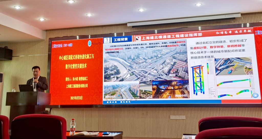 (通讯员 梁荣柱)2021年5月23日下午,应十大买球官方网站院长焦玉勇教授和梁荣柱副研究员的邀请,上海建工集团股份有限公司工程研究总院副院长、买球赛十大平台(武汉)兼职教授吴小建教授级高级工程师作客2021年第8期工程文化论坛,作“中心城区装配式桥梁快速化施工与数字化管控关键技术”专题报告。十大买球官方网站副院长窦斌教授代表学院对吴小建教高的到来表示欢迎,并介绍了吴小建教高的基本科研和工作履历。讲座由梁荣柱副研究员主持,约一百名师生参与报告会。