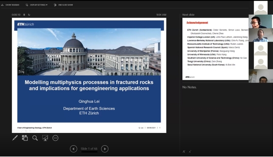 (通讯员:周佳庆)2021年6月8日下午,应买球赛十大平台(武汉)唐辉明教授和李长冬教授邀请,瑞士苏黎世联邦理工学院雷庆华高级研究员和瑞典皇家理工学院邹良超研究员应邀作客2021年第1-2期“重大地质灾害预测与防控学科”111创新引智基地系列学术讲座。讲座采用Zoom在线会议形式,由李长冬教授主持,吴琼教授、周佳庆副教授、祝国强副研究员、鲁莎助理研究员及香港大学、武大大学、浙江大学、中南大学、中国石油大学、东南大学、北京交通大学、南昌大学、重庆大学、西安交通大学、中国科学院武汉岩土力学研究所等多个单位80余名师生在线聆听了此次报告。