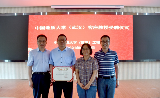 在学术报告开始前,李红丽书记为油新华教授级高工颁发十大买球官网客座教授聘书,学院领导和油新华教授级高工一起合影留念。