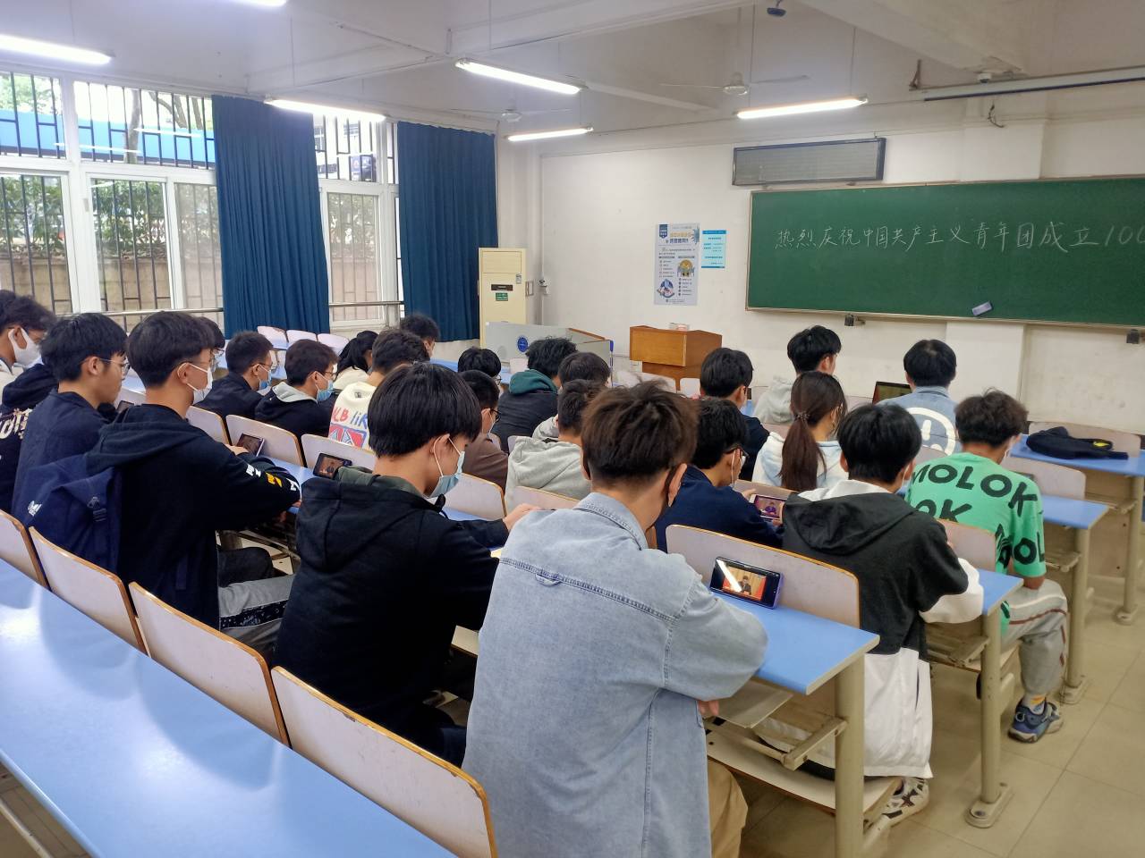 十大买球官网师生观看庆祝中国共产主义青年团成立100周年大会