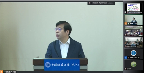 (通讯员 周佳庆)2022年5月15日上午,由买球赛十大平台(武汉)唐辉明教授牵头主持,长安大学、成都理工大学、中国科学院地质与地球物理研究所、兰州大学共同承担的国家自然科学基金重大项目“重大滑坡预测预报基础研究”2021年度总结会议顺利召开。本次会议采用线上线下相结合的方式举行,国家自然科学基金委员会地球科学部于晟副主任、刘羽处长,项目专家组中国科学院傅伯杰院士、龚健雅院士、崔鹏院士、周成虎院士、夏军院士、彭建兵院士、孙和平院士、施斌教授、汪稔研究员、许强教授、汪发武教授、祁生文研究员、叶为民教授、李振洪教授,十大买球官方网站焦玉勇院长、王亮清副院长、章广成副院长、学校职能部门负责人,以及项目和课题承担单位负责人、项目组成员等200余人参加会议。