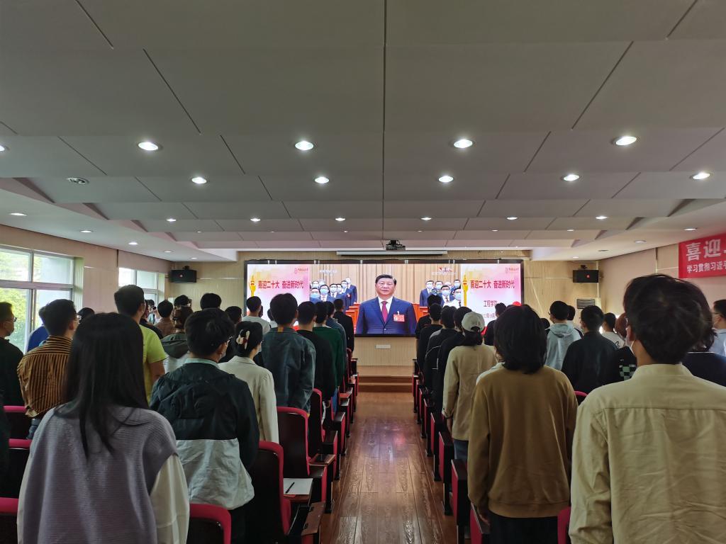 十大买球官方网站党委书记李红丽,院长焦玉勇,副院长王亮清、倪晓阳、章广成,院党委副书记高晓东,各教工党支部书记、主任,院直机关全体工作人员及辅导员在工程楼315集中收看,各系(中心)教工党支部在各系会议室集中收看,学生党支部、团支部代表在工程楼418报告厅集中收看,窦斌副院长及学院代表等在东区教学综合楼A0113集中收看,其他师生在各自宿舍、工作室、会议室等通过电脑、手机收听收看。