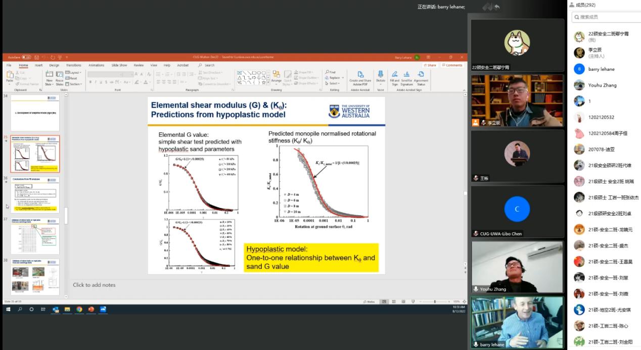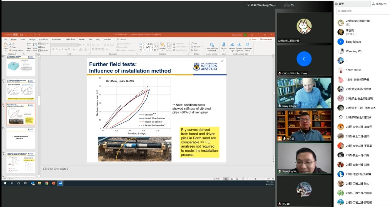 (通讯员 李立辰 黄静)12月8日上午,应十大买球官方网站吴文兵教授与李立辰博士的邀请,西澳大学Barry Lehane教授做客工程文化论坛,为十大买球官网师生进行线上学术报告。此活动为买球赛十大平台(武汉)70周年校庆系列学术活动之一。十大买球官方网站勘察与基础工程系博士后李立辰主持报告,300余名师生与行业专家参加了本次活动。