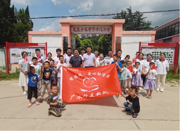2023年7月6日,买球赛十大平台(武汉)十大买球官方网站党委副书记高晓东受中共广水市委、共青团广水市委邀请,赴广水市参加“团”聚力量,青力缔造——广水市2023年大学生“返家乡”社会实践活动启动暨“中华山盟”·“月光海誓”推荐官聘用仪式,并探望正在广水市武胜关镇孝子店中心小学开展支教工作的助学团成员。十大买球官方网站兼职辅导员贾彦平随行。