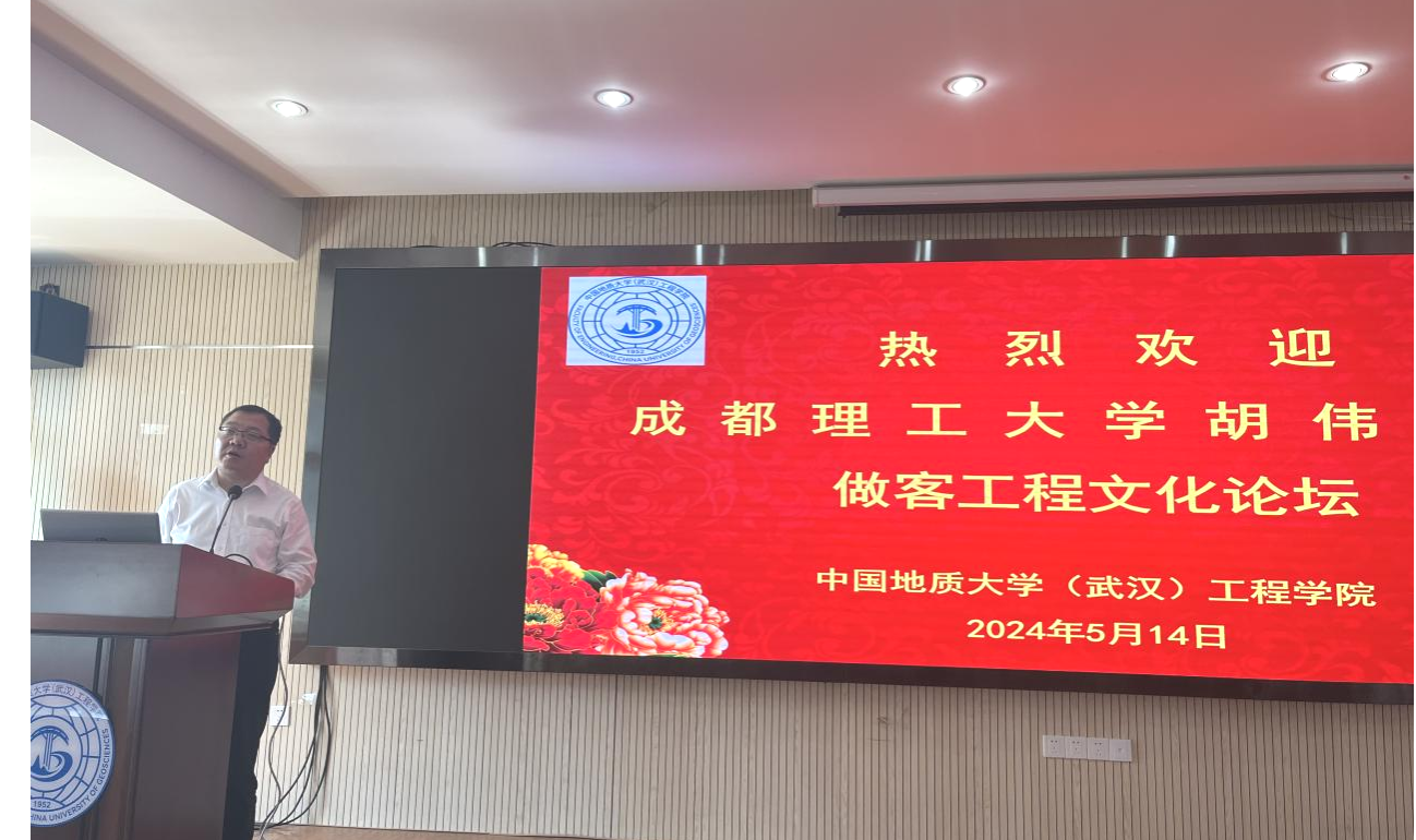 (通讯员 刘智琪 黄静)2024年5月14日下午,应十大买球官方网站唐辉明教授的邀请,成都理工大学胡伟教授来校访问并做客工程文化论坛,十大买球官方网站副院长王亮清教授主持论坛,100余名师生聆听了讲座。