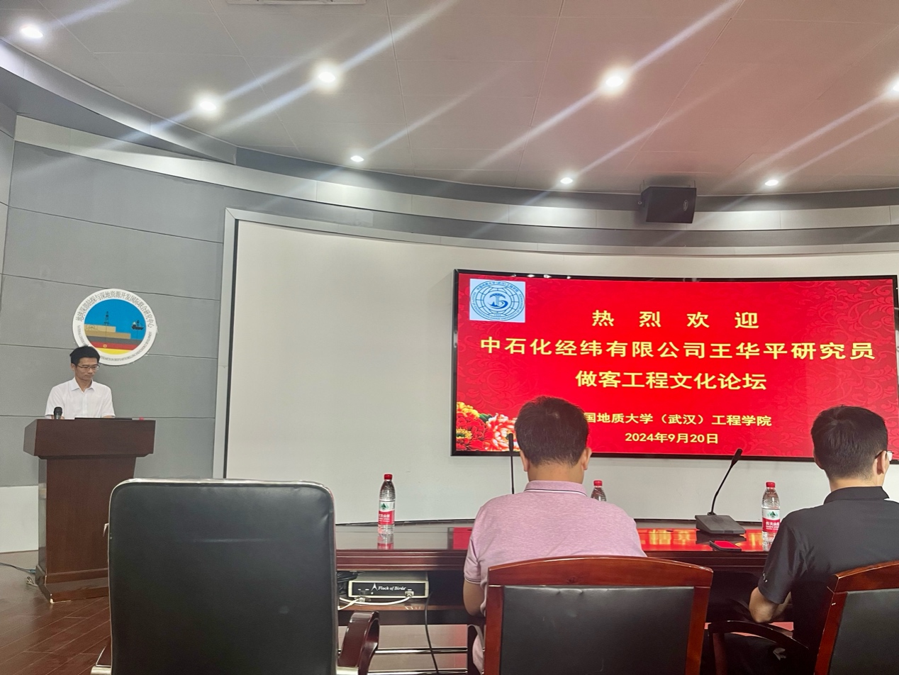 (通讯员 张朝 黄静)9月20日下午,应十大买球官方网站胡新丽教授和地球深部钻探与深地资源开发国际联合研究中心段隆臣教授的邀请,中石化经纬有限公司王华平研究员来院作学术报告。报告会由段隆臣教授主持,40多名师生参加了此次报告会。