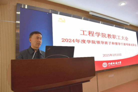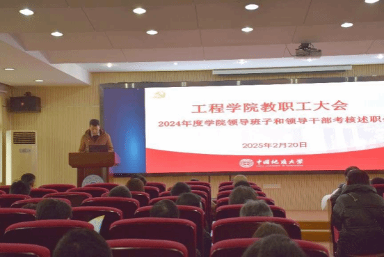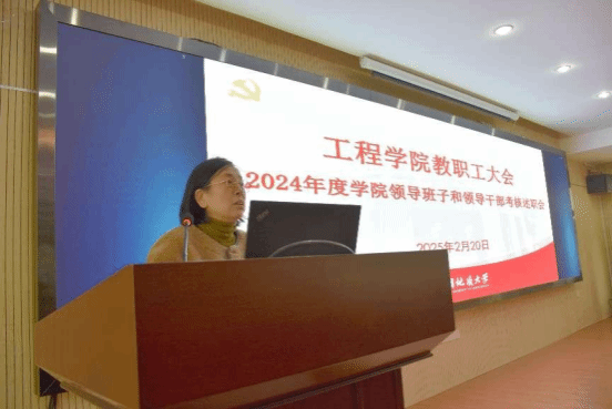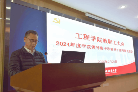 院长王亮清代表学院领导班子做2024年度述职述廉报告。学院领导班子成员李红丽、王亮清、窦斌、倪晓阳、章广成、高晓东分别进行个人述职述廉。与会师生对学院领导班子及领导干部进行民主测评。