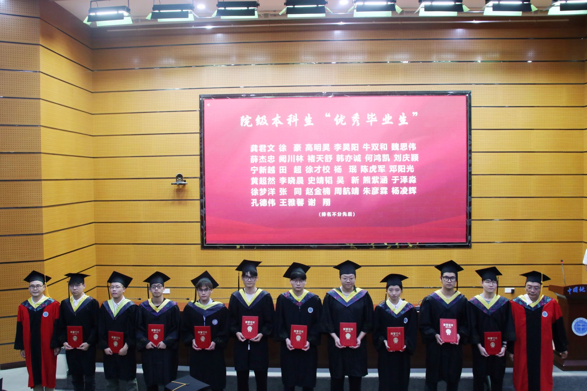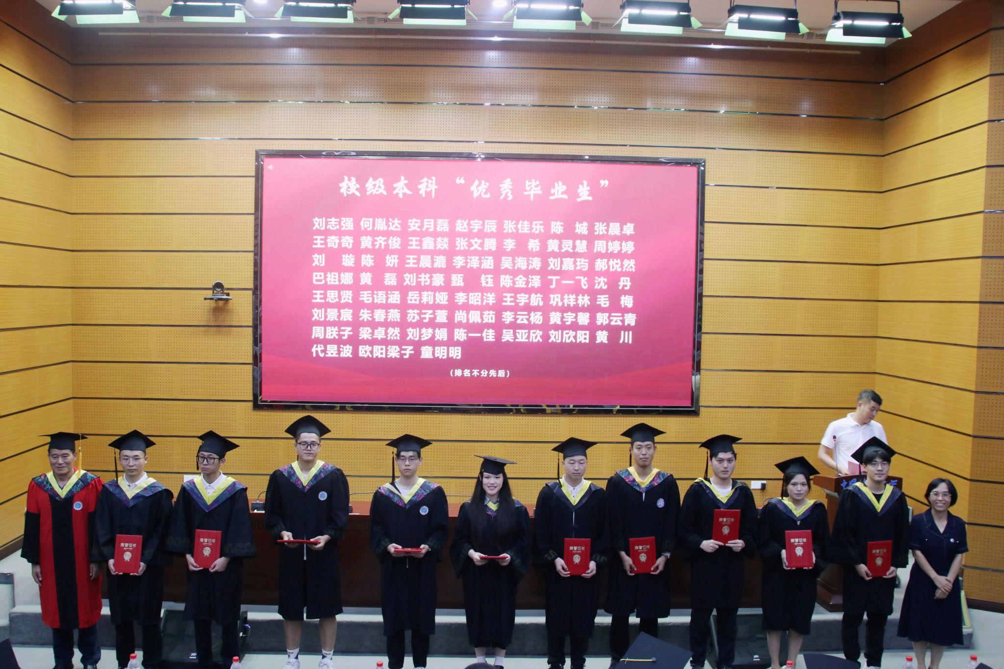 校友代表、学院领导班子成员和研究生导师代表分别为获得校院两级本科生“优秀毕业生”、研究生“优秀毕业生”的同学颁奖。