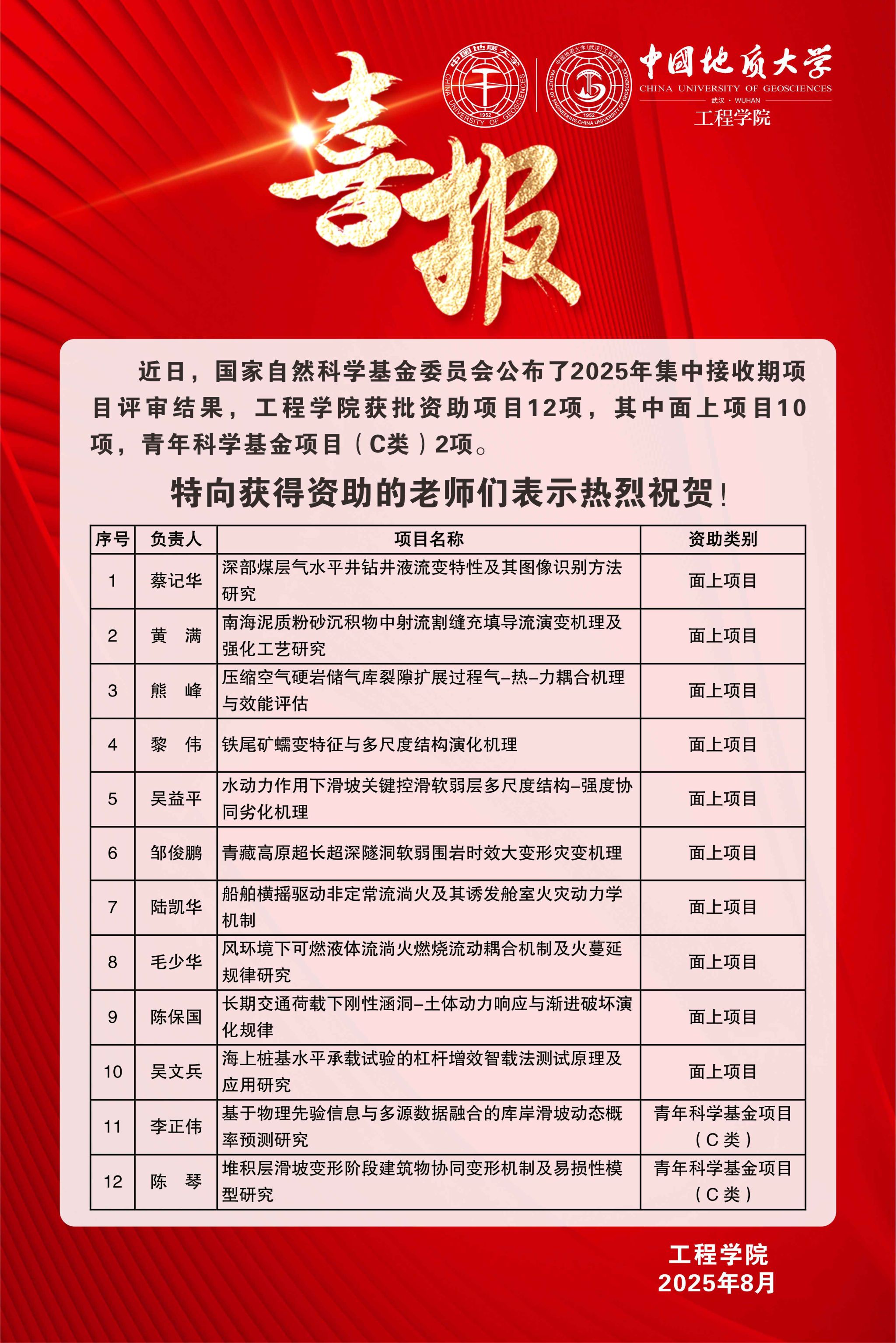喜报:十大买球官方网站获批国家自然科学基金项目12项