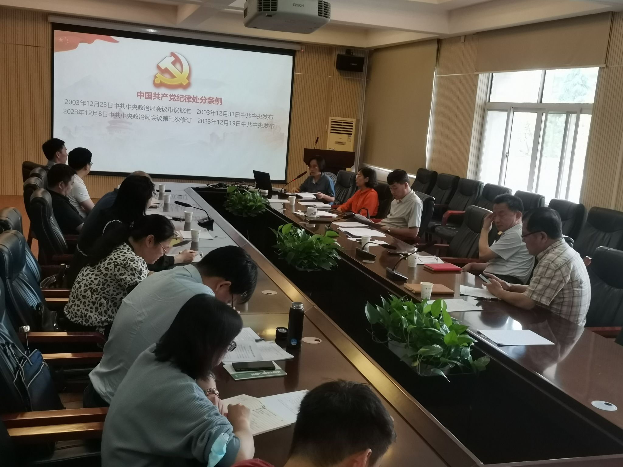 会上,李红丽书记详细解读学校党委印发的《党纪学习教育实施方案》通知精神,部署十大买球官方网站“党纪学习教育专题读书班”学习计划和要求。她强调,学院各级党组织和师生党员要循着理论学习、实践教育、文化涵养“三条路径”,聚焦学习《条例》、警示教育、解读培训“三种方式”开展党纪学习教育。党委理论学习中心组成员要带头执行党纪学习教育各项要求,六位党员领导干部要分别领学“六项纪律”内容,要在学习教育活动中做到原原本本学、逐条逐句学,结合案例学、联系实际学,要将党纪学习教育体现在学院落实全面从严治党、党风廉政建设和反腐败工作的职责任务当中,要将党纪学习教育与贯彻落实中央八项规定精神、锲而不舍反对“四风”以及严守师德师风和意识形态主阵地关联起来,要将党纪学习教育融入学院党的建设、教育教学、人才培养、科学研究、文化涵养、社会服务等工作当中,进一步提升学院各级党组织和全体师生党员的党性、党风、党纪水平。随后,按照坚持原原本本、逐条逐句学党纪的要求,李红丽领学了《条例》第六章:对违反政治纪律行为的处分,党委副书记、纪委书记高晓东领学了《条例》第八章:对违反廉洁纪律行为的处分,并结合实际工作交流学习体会。