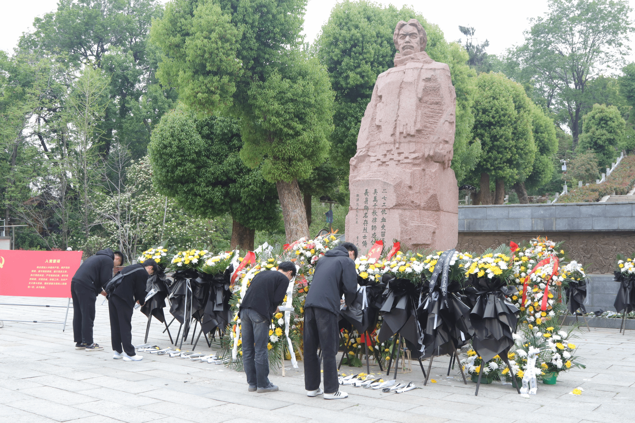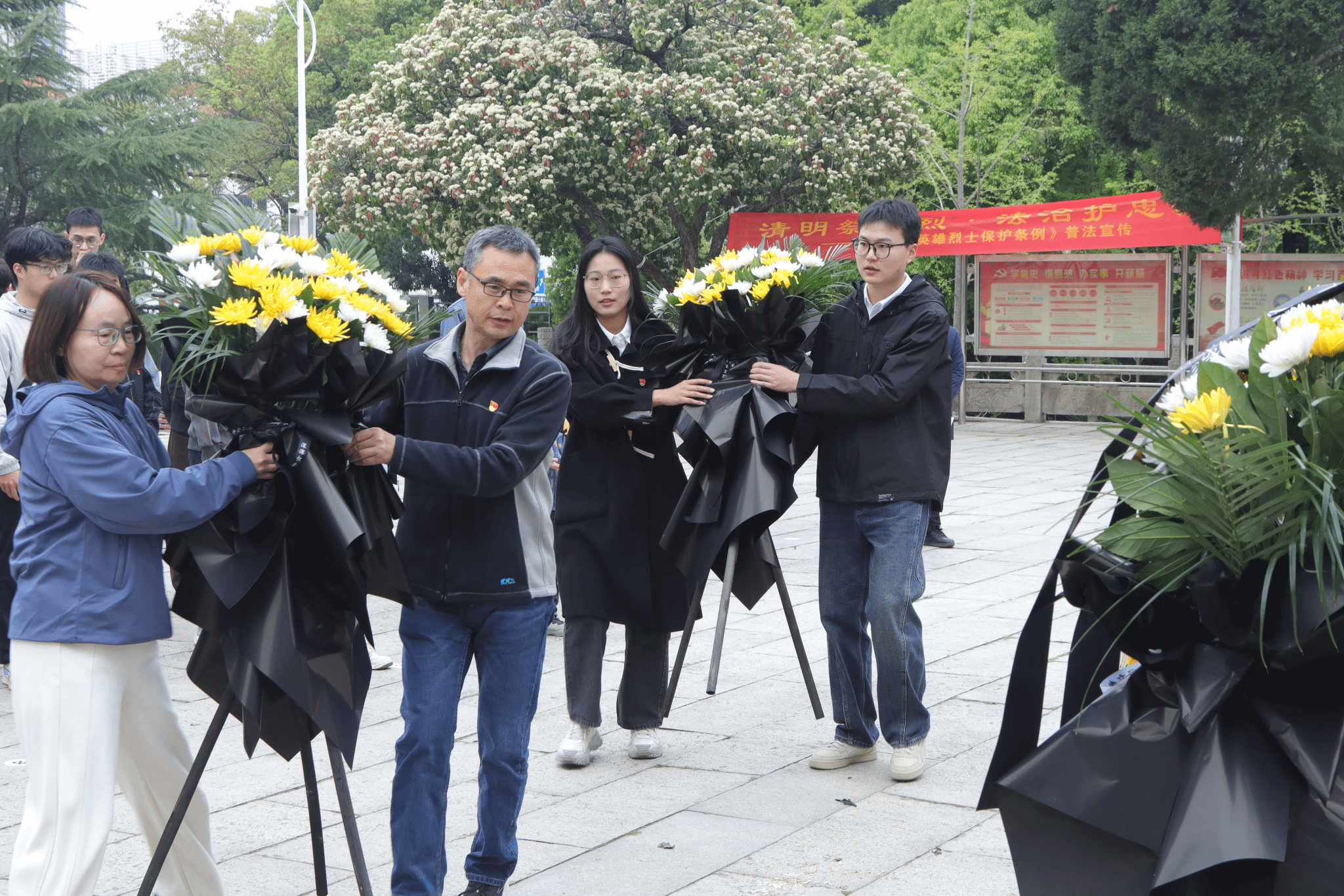 活动伊始,全体师生整齐列队于施洋烈士纪念雕像前,神情庄重肃穆。在激昂的国歌声中,大家向革命先烈致以最崇高的敬意。国歌奏毕,全场默哀一分钟,寄托对先烈的深切缅怀。随后,师生代表向施洋烈士纪念雕像敬献花篮,表达对先烈丰功伟绩的追思。