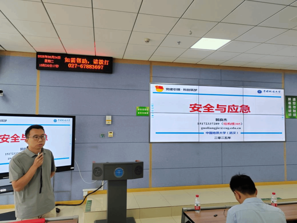 随后,郭良杰副研究员以“生动详实的典型案例”以及“系统详细的专业知识”,层层深入地解析“安全工程”与“应急技术与管理”的专业内涵与外延。既夯实了同学们对专业基础的理解,也为大家在未来专业分流时的方向选择提供了清晰指引,让2024级本科生对专业前景有了更具象、更深刻的认知。此外,他也从发展历程、社团特色、资源支持以及实践育人等方面介绍了安全工程系学术科技类社团——买球赛十大平台(武汉)“地心守护”社团。他提到,社团作为科创与实践的“孵化站”,鼓励学生通过社团活动积累实践经验、锤炼过硬本领,将专业知识转化为解决实际问题的能力。