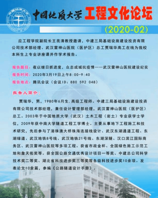 图4王亮清教授邀请雷神山医院总工贾瑞华高工专业讲座课并作学术报告
